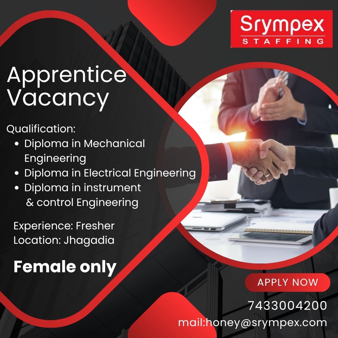 Requirement for Apprentice@ Jhagadia (Only Female)